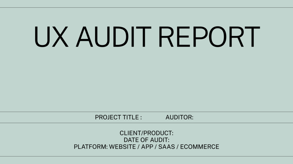 A clean, structured UX Audit template to help designers evaluate interfaces, document findings, and deliver actionable insights β professionally.