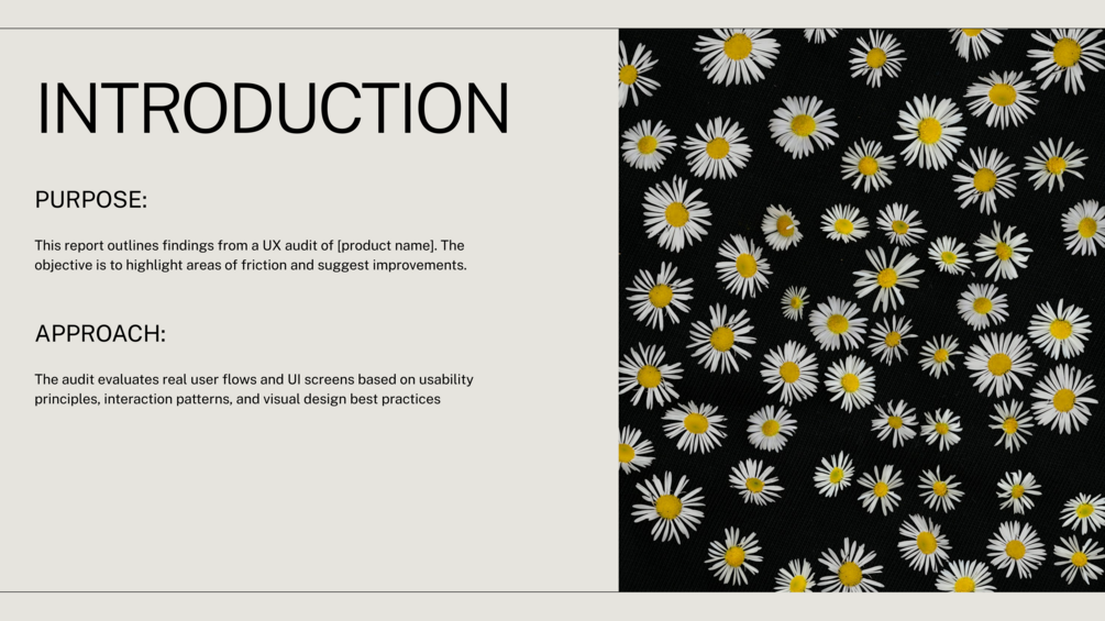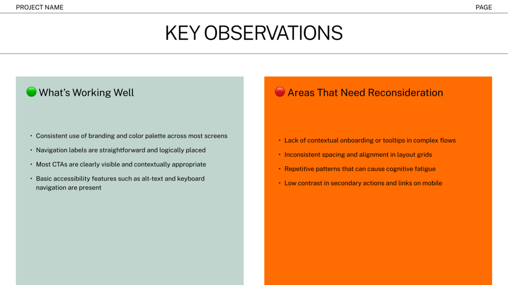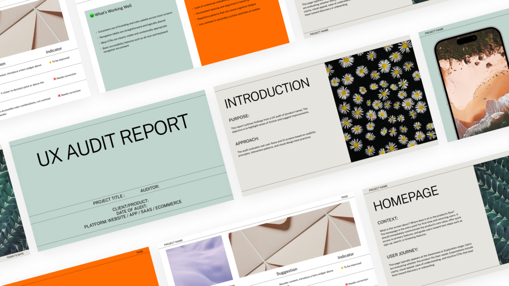 This is your go-to UX Audit Template, built for product designers, UX professionals, and creative agencies who want to evaluate digital products, communicate problems clearly, and offer meaningful design solutions.
